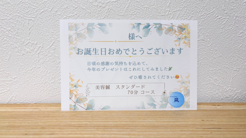 凪のプレゼントカードについて(美容鍼・鍼灸のギフト)